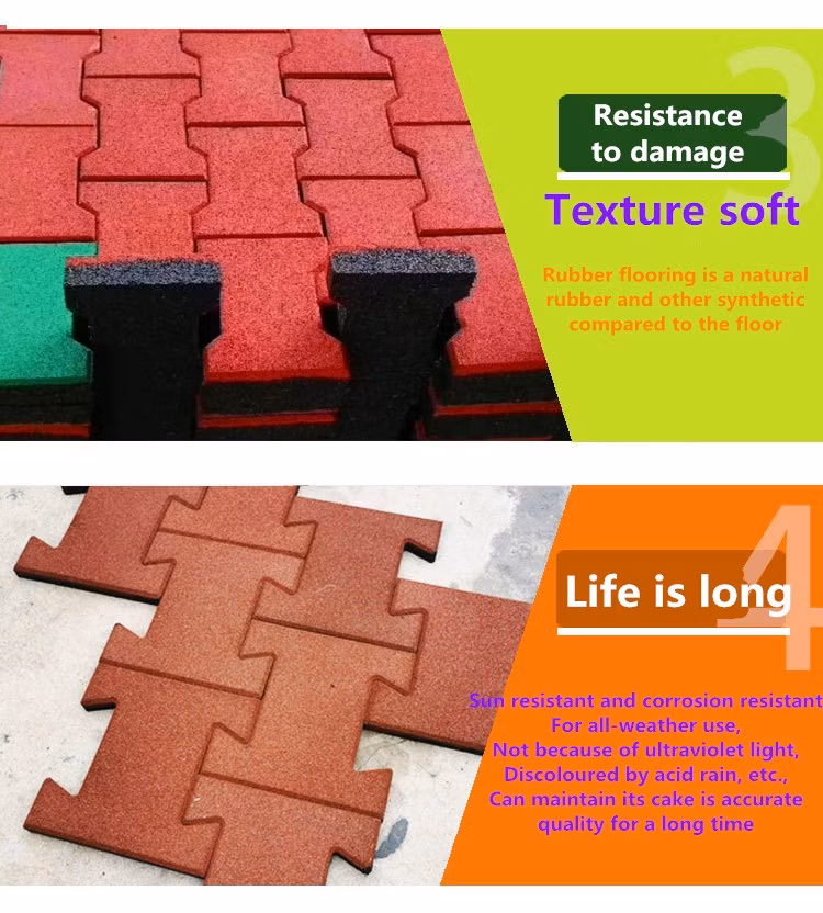 1: Fabricado con goma reciclada y aglutinante de poliuretano 2: Resistente, flexible y duradero